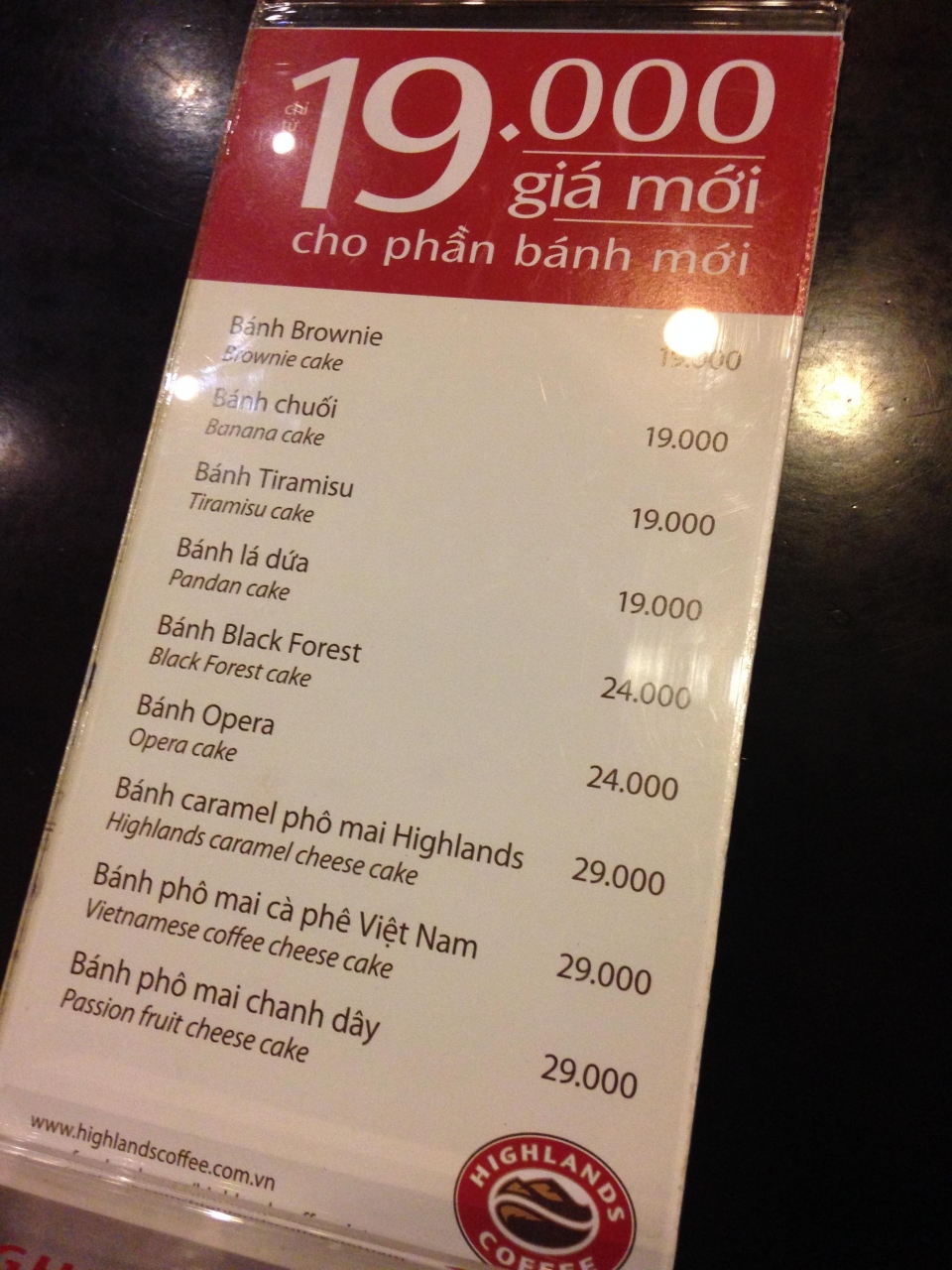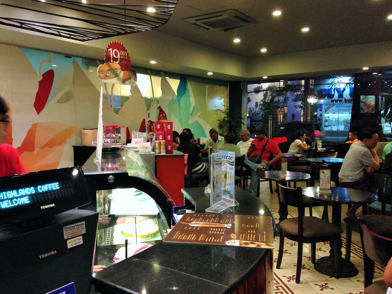 ホーチミン市内各地で目にするハイランドコーヒー。もはやベトナム版スターバックス?タリーズといった趣です。全店舗共通でモダンな店内、free-wifi、冷房完備、そしてお手頃な値段なのでローカルの若い人と観光客で賑わっています。勿論ベトナムコーヒーも飲めるので、旅行中に一度は行くことになりそうな場所。