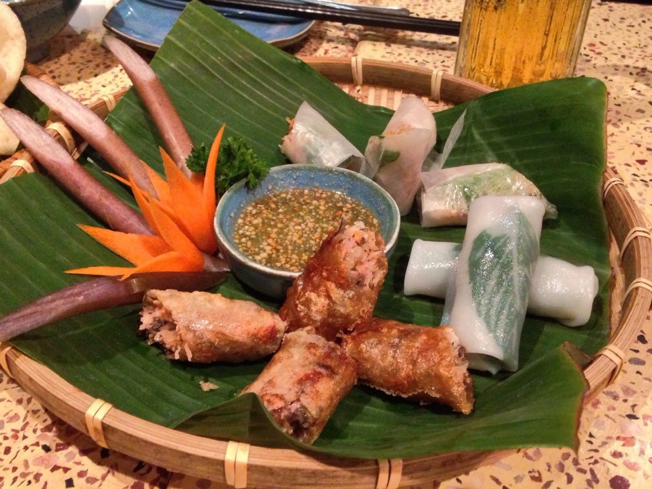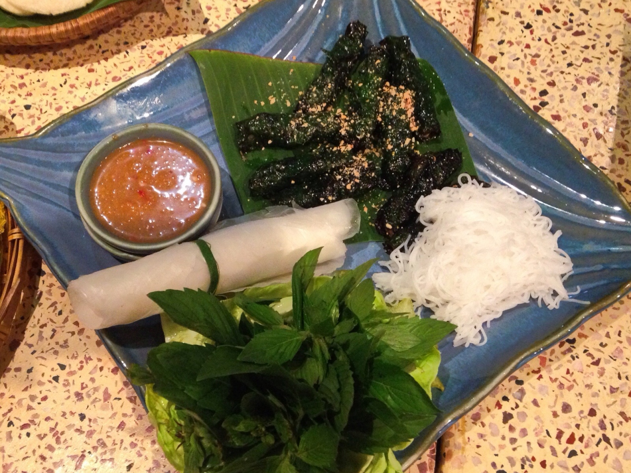 お料理はいわゆるベトナム料理に加え、地方料理であるカボチャの花の炒め物などもあり。メニュー写真をiPadで見せてくれるので、イメージしやすいと思います。どれも洗練された盛り付けとお味で、女性同士で訪れるにはピッタリのお店です。1人3000円もあれば足りるかと思います。- 旅行時期