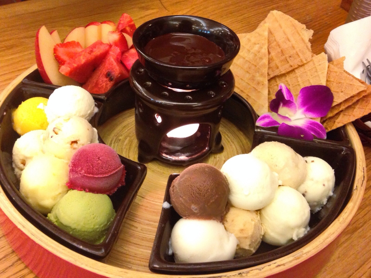 単品のアイスでテイクアウトも良いのですが、ここは是非みんなでアイス盛り&チョコフォンデュのスイーツボートを!ものすごく女子を満喫できます★