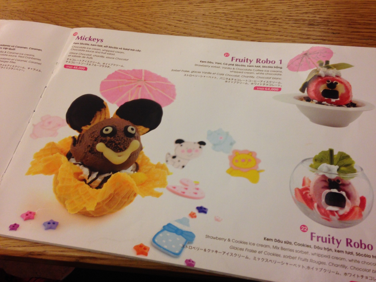それから、某著作権に厳しいネズミーを模したアイス盛り合わせメニューに、改めてベトナムを感じさせられます…。- 旅行時期