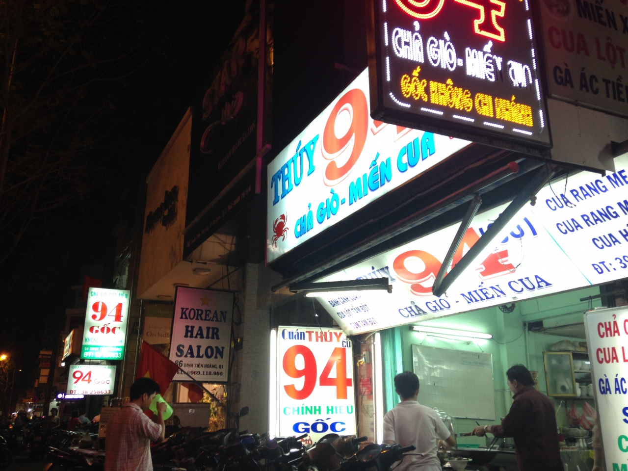 店の住所が店名まんまのカニ料理が美味なローカルレストランです。あまりの人気ぶりでか2店舗並んでいますが関係はないようで、右側のお店が本家です(ちなみに本家の方が住所が94番地ではないらしい…)。