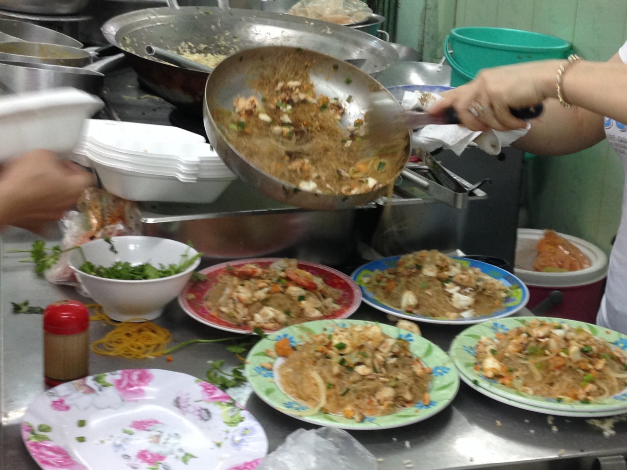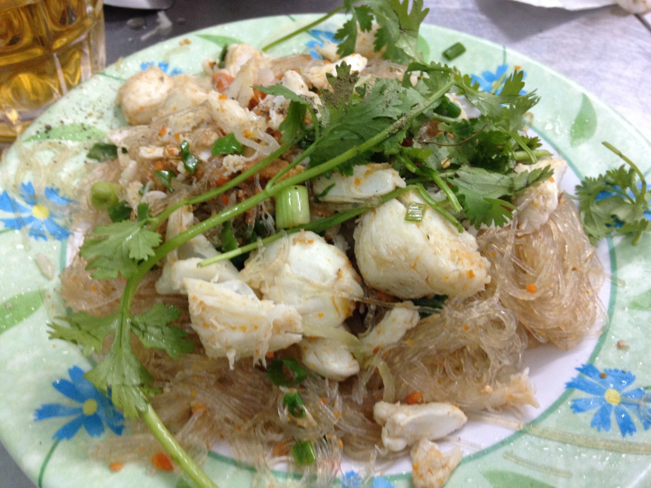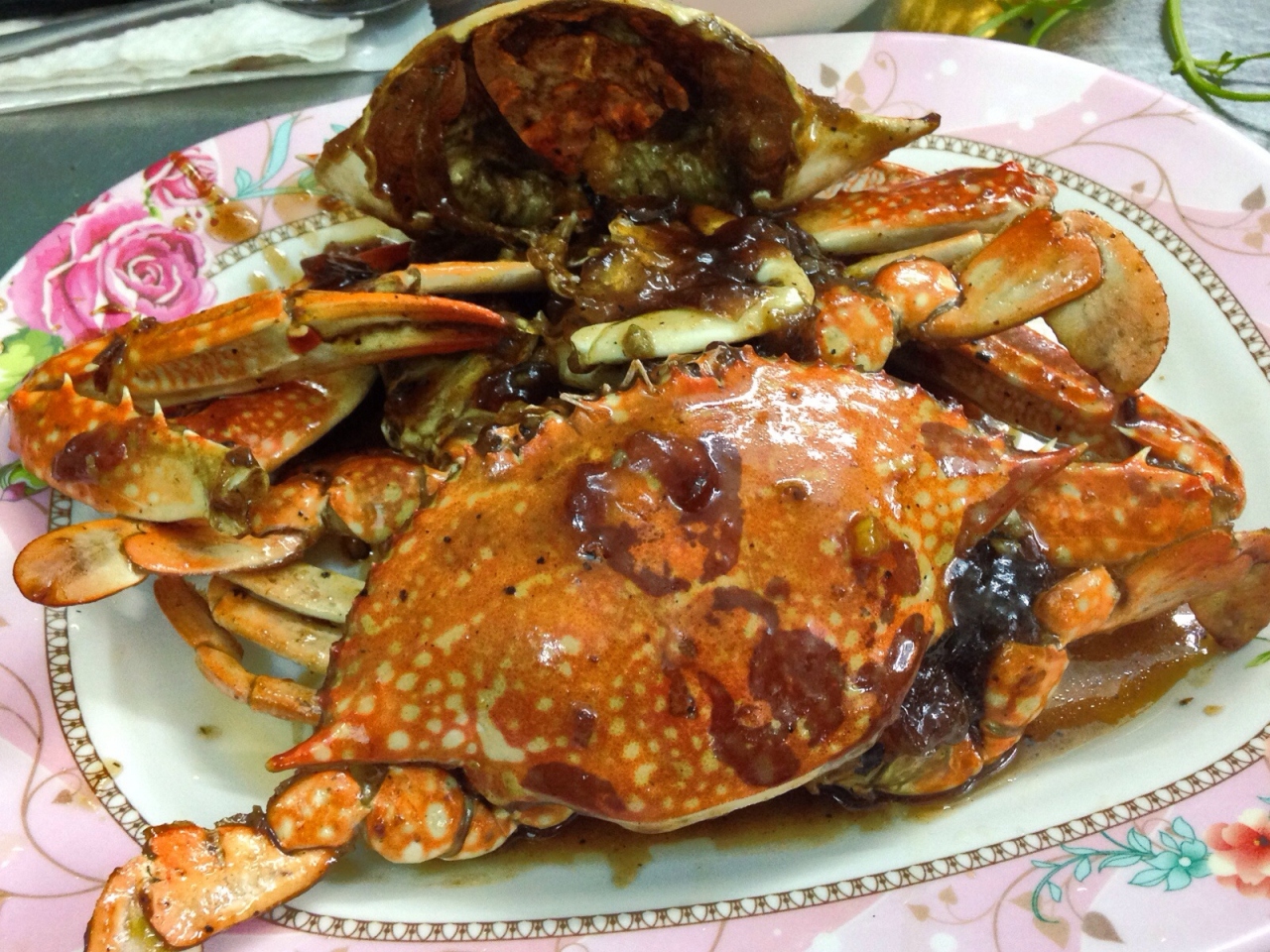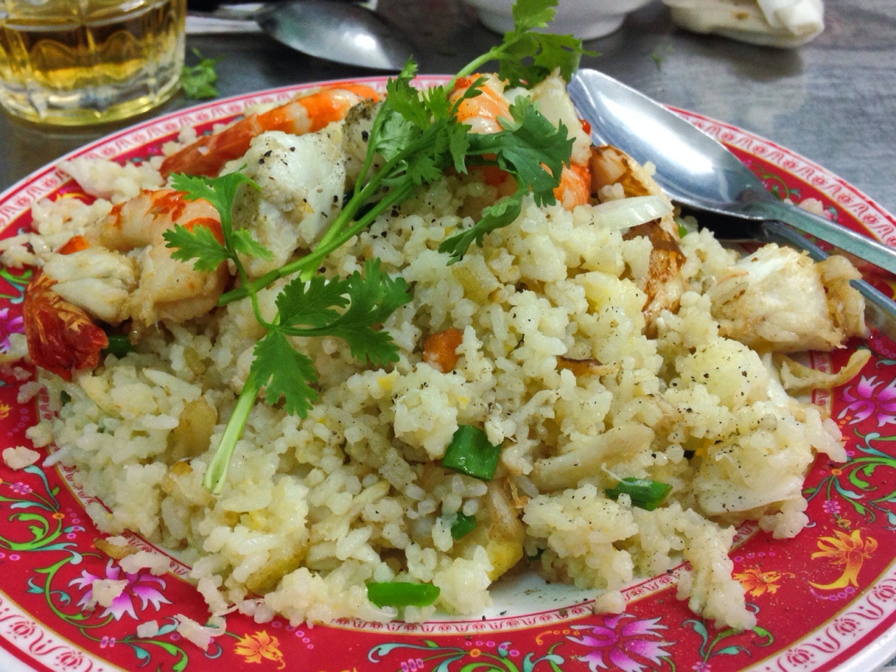 とにかくカニ尽くしの料理で、カニスープ、カニチャーパン、ソフトクラブ揚げなどあります。エビ料理もありますが、やはりカニの方をお勧めします。イチオシはカニのタマリンドソース炒め!手でつかんでかぶりつくので、甘じょっぱい味のソースで手がベタベタになりますが、一同無言になるくらいに美味です。あとはカニビーフン!麺が旨みを吸ってもの凄い美味です。これはマスト。