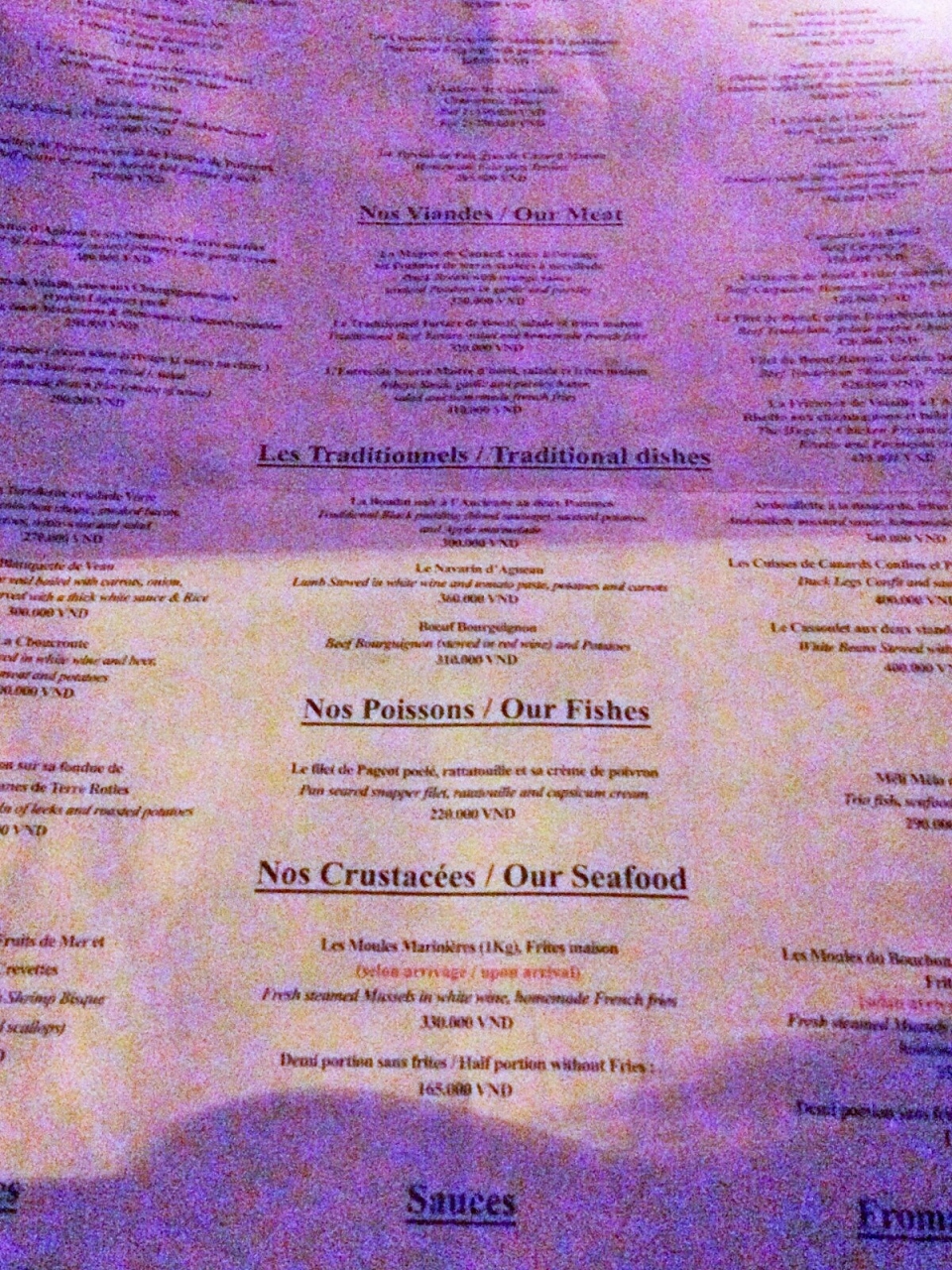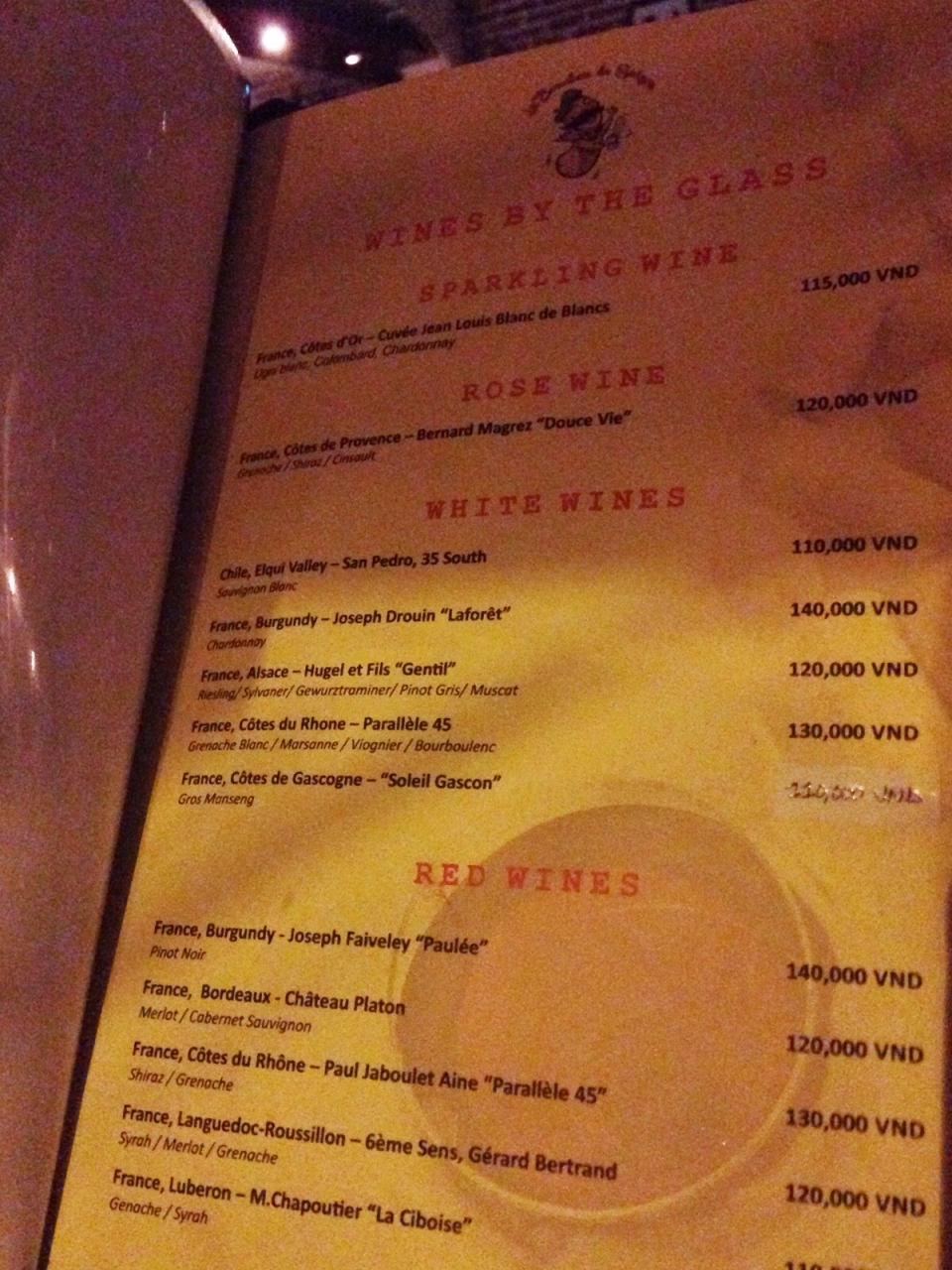 旧フランス領のベトナムにはフレンチレストランがいくつかあるのですが、ここはいわゆるビストロ料理を出すお店です。