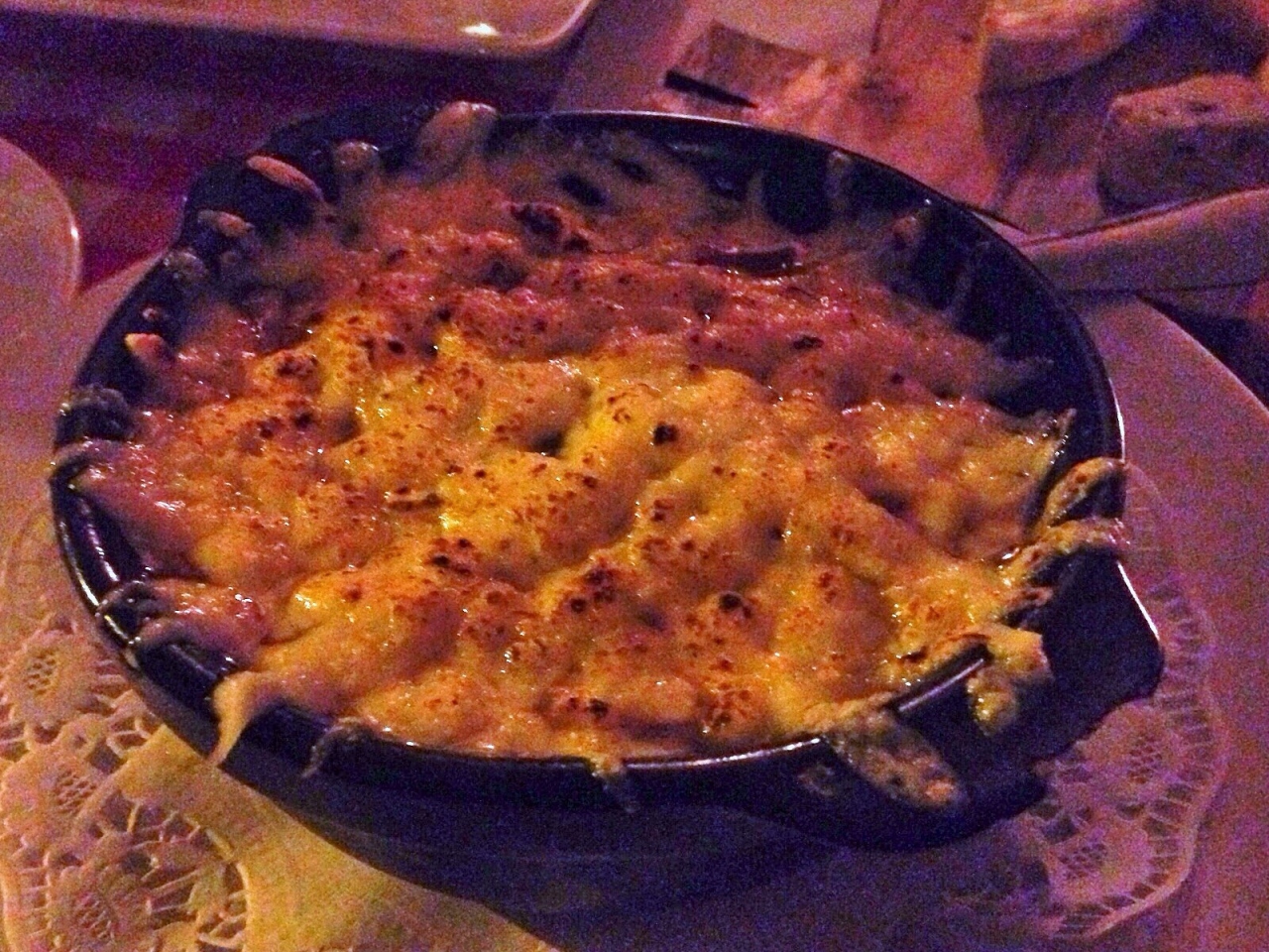 赤いギンガムチェックのテーブルクロスに、メニューには典型的なビストロ飯が並びます。オニオングラタンスープ、牛ステーキ、シャトルキュリ盛り合わせ、フォワグラソテー、チーズの盛り合わせ、ムール貝のワイン蒸しなどなど…。ワインもボルドー、アルザス・ロレーヌなどフランスワインが並び、ここだけさながらフランスのよう。お料理のクオリティ委は一定を保っており、どれを食べても大きく外れることはないと思います。