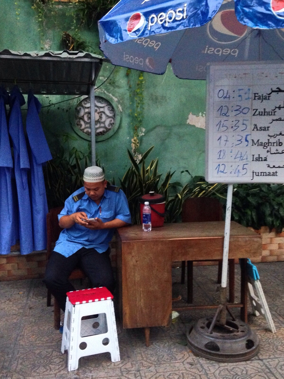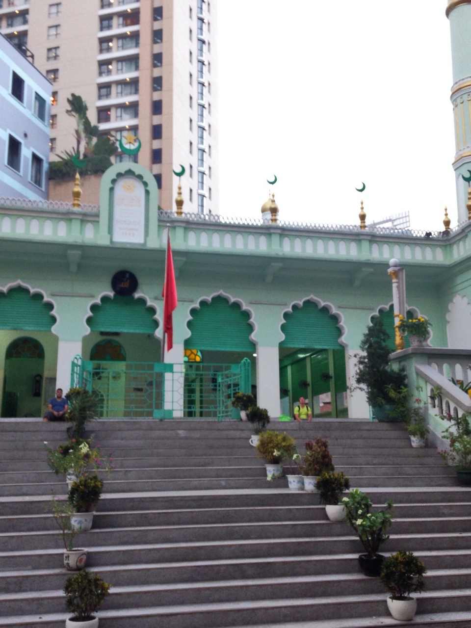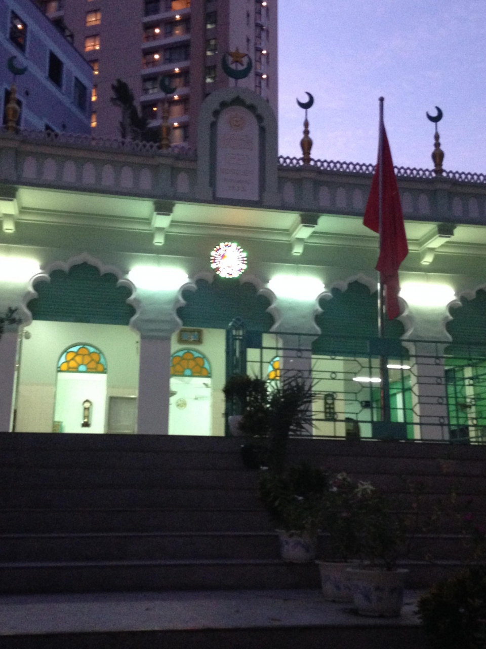 ホーチミンの真ん中に何とモスクが!!!この国でマイノリティのイスラム教徒ですが、立派なモスクがあることに感激です。多くのモスク同様、信者でなくても立ち寄ることはできるので、2015年元旦に初詣に行ってきました。肌露出&頭部を隠すスカーフが無い女性は入口で肌を隠す服を借りて着用する必要があります(無料)。