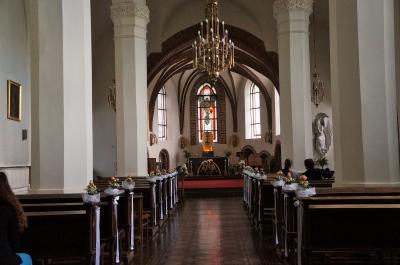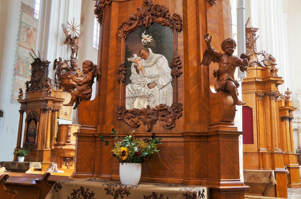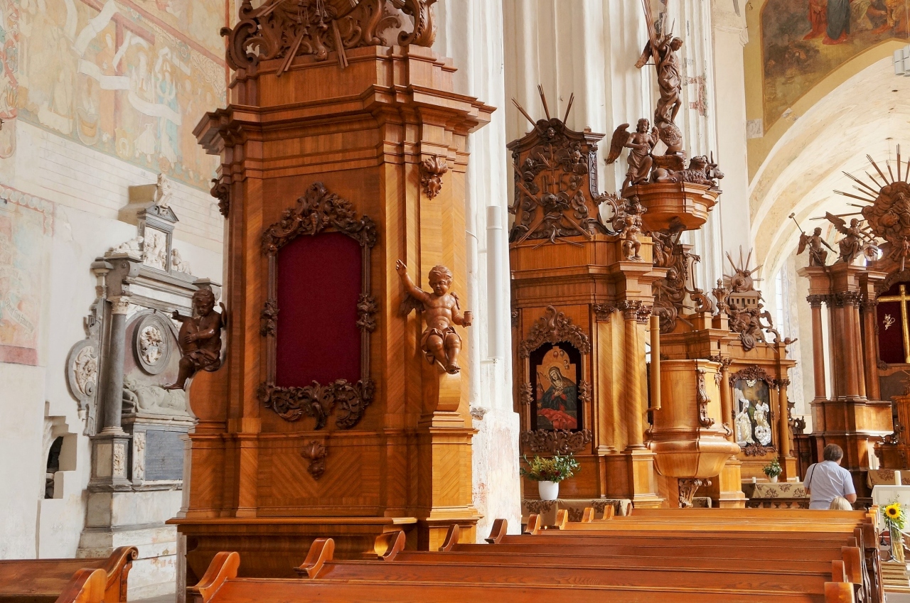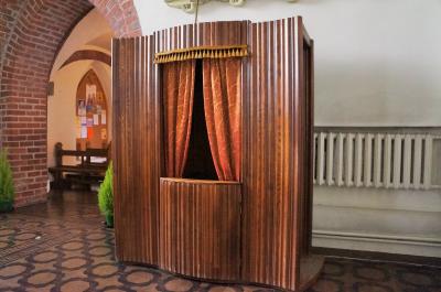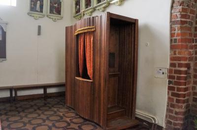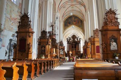 15世紀に建てられたゴシック様式の教会は、内部も重厚で落ち着いた雰囲気。懺悔室などもあって中世さながらの気分に浸れます。広くはないですが上部が抜けていて開放感があります。
