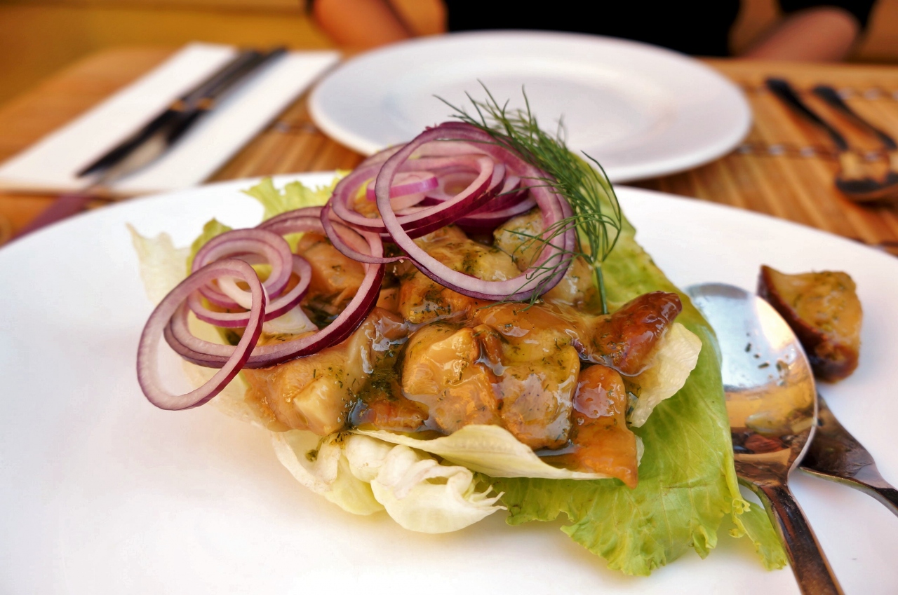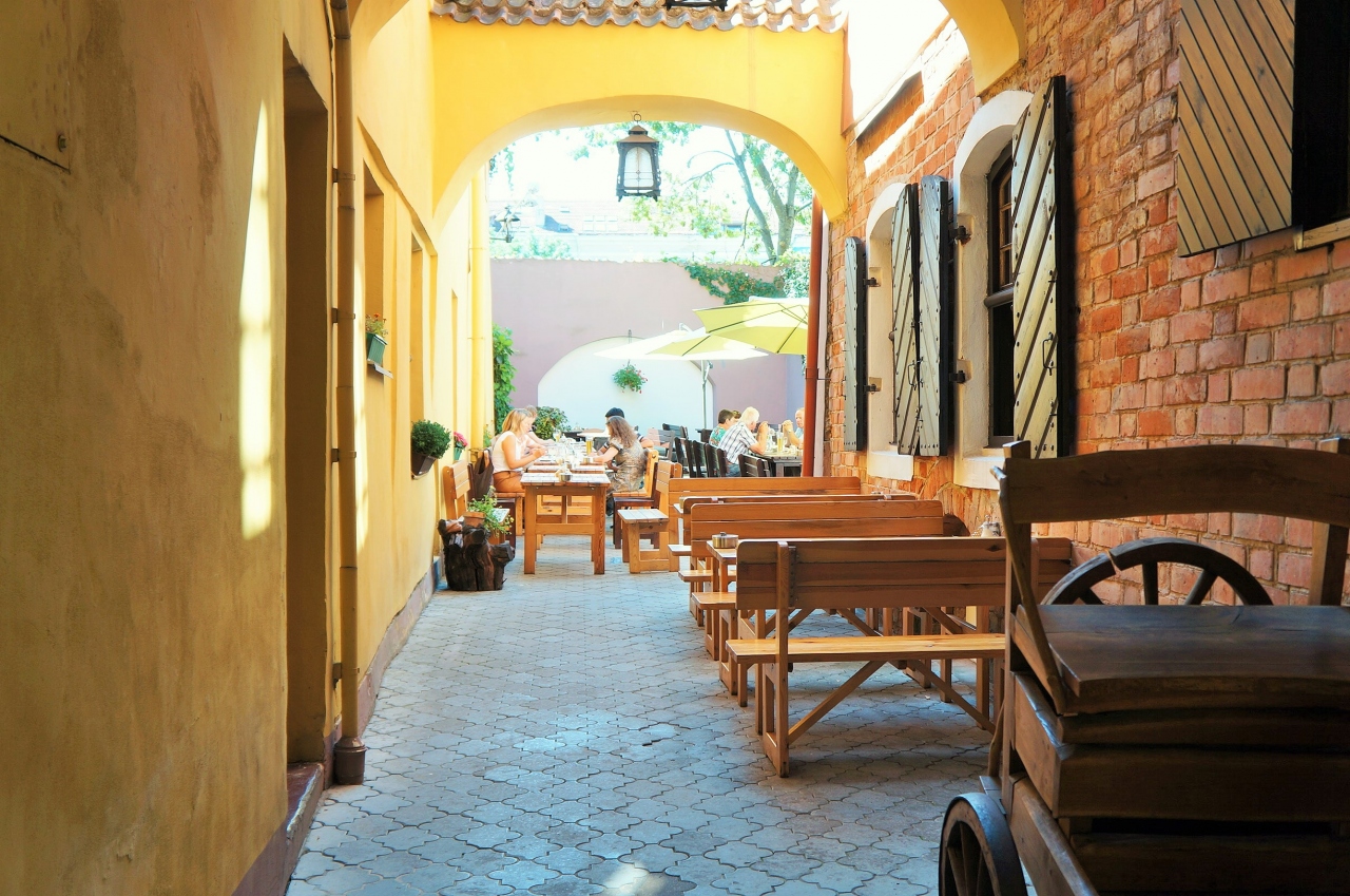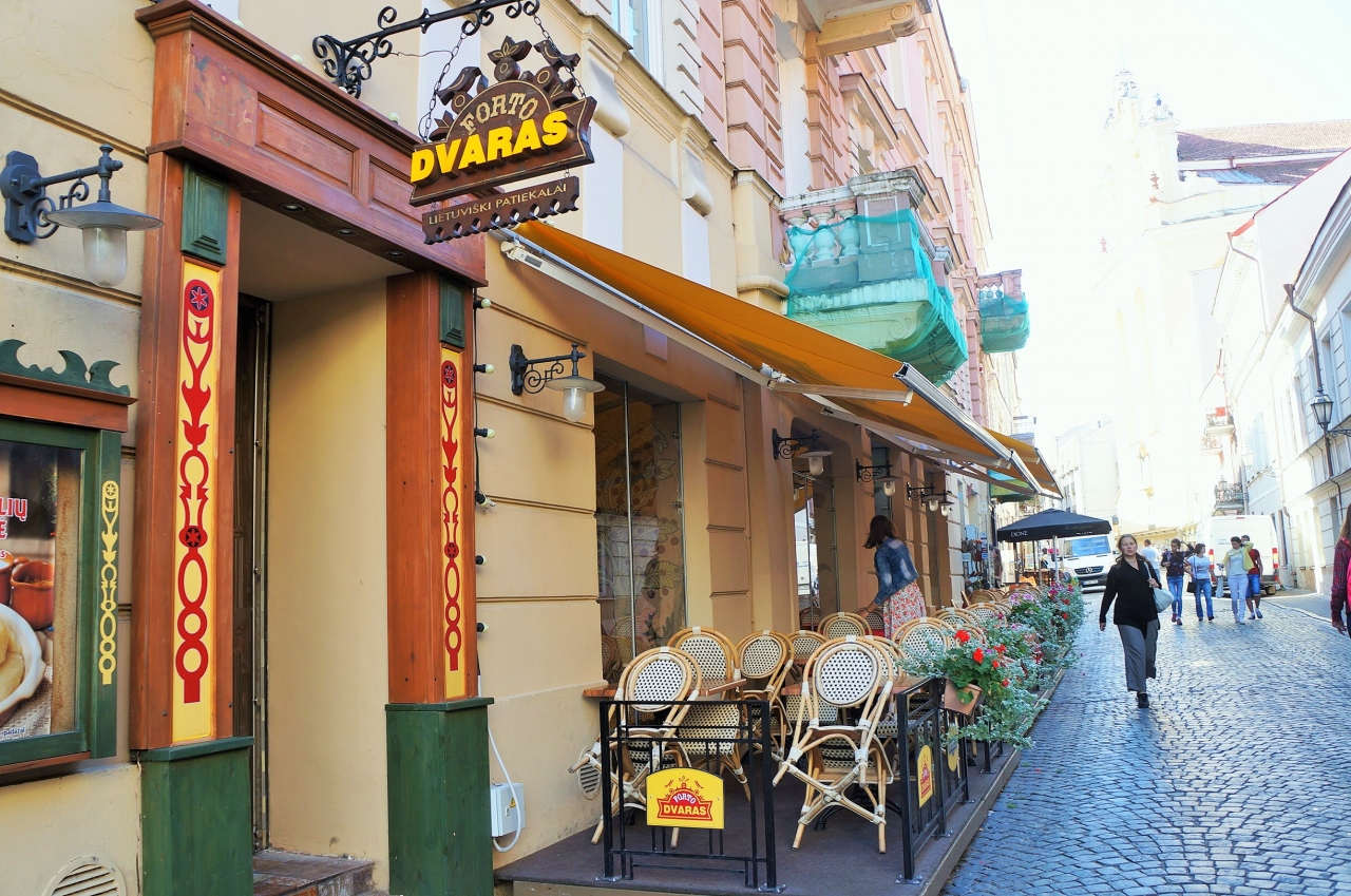 ヴィリニュス旧市街地には色々なレストランがありますが、ここはジビエ(野禽)に特化した珍しい狩猟系のレストランです。お店のトレードマークである熊の彫刻が迎えてくれる店内は、夏はテラス席で頂くことができます。