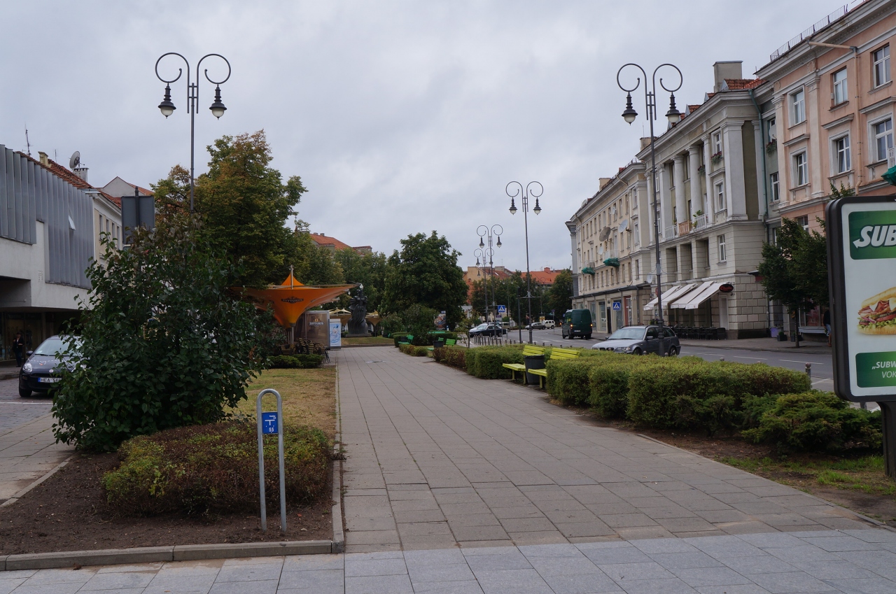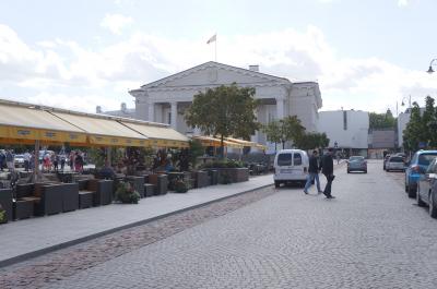 ヴィリニュスの旧市街地は、タリン・リガに比べてあまり古い街並みが残されている的な風情は少な目ですが、この市庁舎広場の北側から大聖堂を縦に結ぶピリエス通り(Pilies)は、素敵な街並みが広がっています。