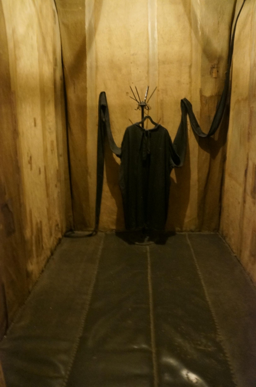 陽の光が入らない地下牢にはシャワー、トイレ、そして尋問室や懲罰房・拷問部屋などが生々しく公開されています。もちろん処刑部屋も処刑の壁もあり。