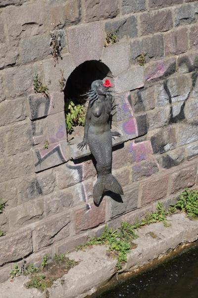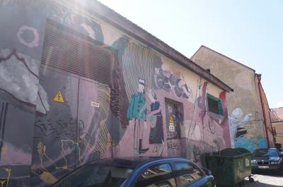 ヴィリニュス旧市街地の東側に位置するこの場所は、川で旧市街地から断絶されていたため、大きな発展も無く昔の雰囲気を残しており、アーティストや学生などの若者がそれを好んで移り住んでいったそうです。そのせいか、この一帯には謎彫刻や謎像、謎モニュメント、グラフィティなどが至る所にあり、またギャラリーや小さいお店などもあって楽しい雰囲気です。