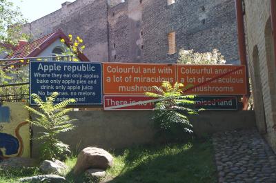 ヴィリニャ川の川向こう=ウジュピス、という意味で名づけられたこの地域は、2002年に独立を宣言しなんちゃって共和国を名乗っています。