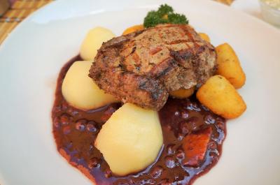 メイン1:ゲディミナス大公のお気に入り、猪のロースト~コケモモと洋ナシ添え