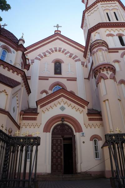 カウナス旧市街地の最南端、ネムナス側のほとりにあるこの教会は、リトアニアの名君ヴィタウタス大公がタタール征伐に出かけたときに、危うく難を逃れたことに対する感謝の意を込めて建てられたそうです。