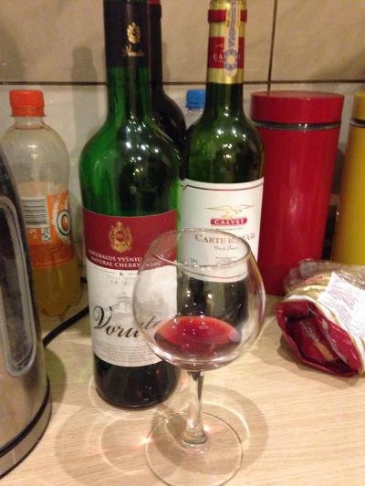 夜遅くの到着を玄関の外で待っていてくれたばかりか、着くなりリトアニアワインの振る舞いが!なんと素晴らしい…ここをワインの館と名付けよう。