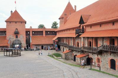ヴィリニュスから約30km離れた、湖に囲まれた美しい土地とお城です。ここはかつてのリトアニアの首都で、チュートン(ドイツ)騎士団かの侵略を防ぐべく14世紀にヴィタウタス大公によって建設されました。その当時は大いに発展しましたが、16~17世紀ごろになるとヴィリニュス等に中心部が遷り、次第に衰えていったようです。