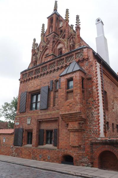 カウナス旧市街の旧市庁舎広場から南に入ったところに、赤煉瓦が特徴的な古い建物が見えると思います。そこがこのペルクーナスの家です。