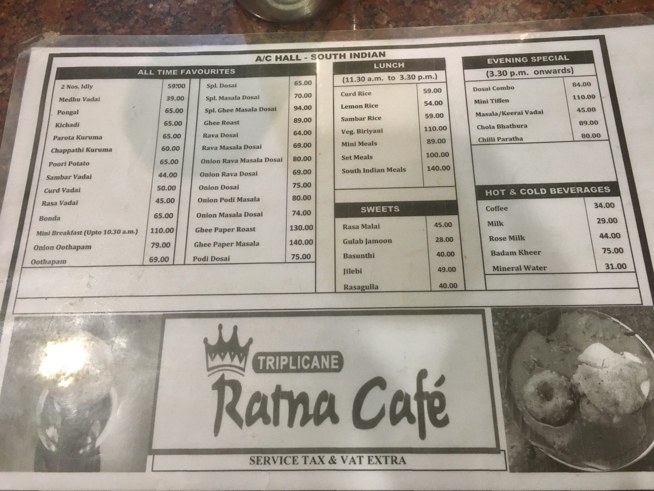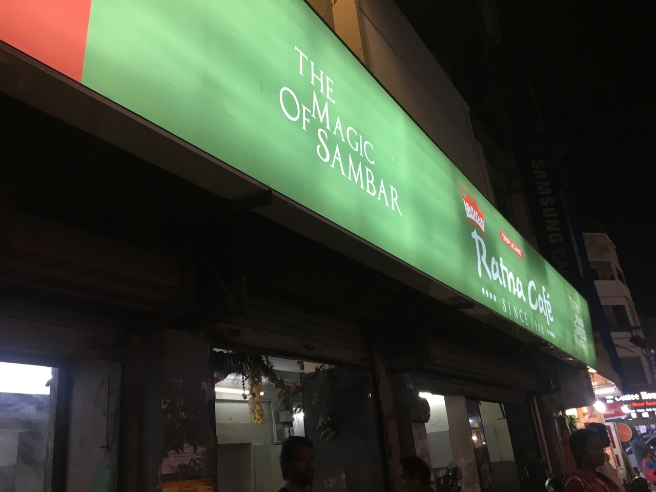 南インドの中心・チェンナイでは、南インド料理が主流。こちらのラトゥナカフェは、南インドの軽食ティファン&マンチュリアン(インド風中華料理)を頂くことができます。