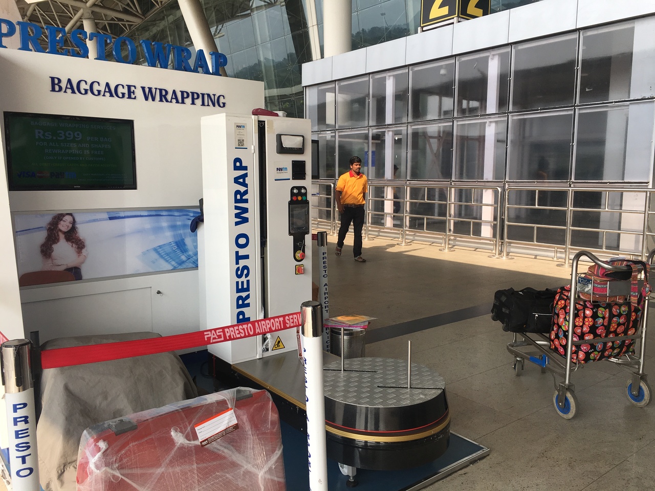 フリーwifiはTata Docomoが運営しており、4桁のワンタイムパスワードを入れて使用します。入口にある荷物グルグルラッピングサービスは399ルピーでした。- 旅行時期