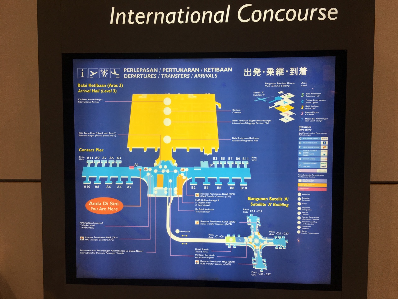 KLIA=クアラルンプール国際空港、2013年ぶりの利用でした。以前と比べてレイアウトに大きな変更はなく、相変わらず巨大な空港だなという印象。