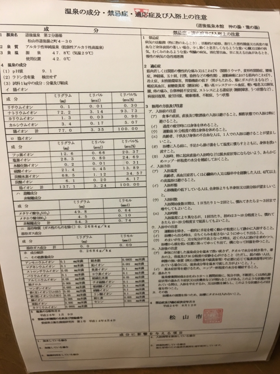平日金曜にかかわらず、客の入りは8割で驚き。もっと少ないかと思ってました。松山には東アジア外国人もたくさん訪れており、インバウンド需要もあるのだと思いました。アメニティ類はすべて有料ですが、1万以下で松山まで行けるのはとてもるありがたい。