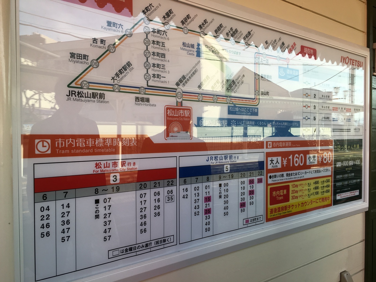 2018年3月現在で、松山市駅まで560円、道後温泉駅まで610円でした。- 旅行時期