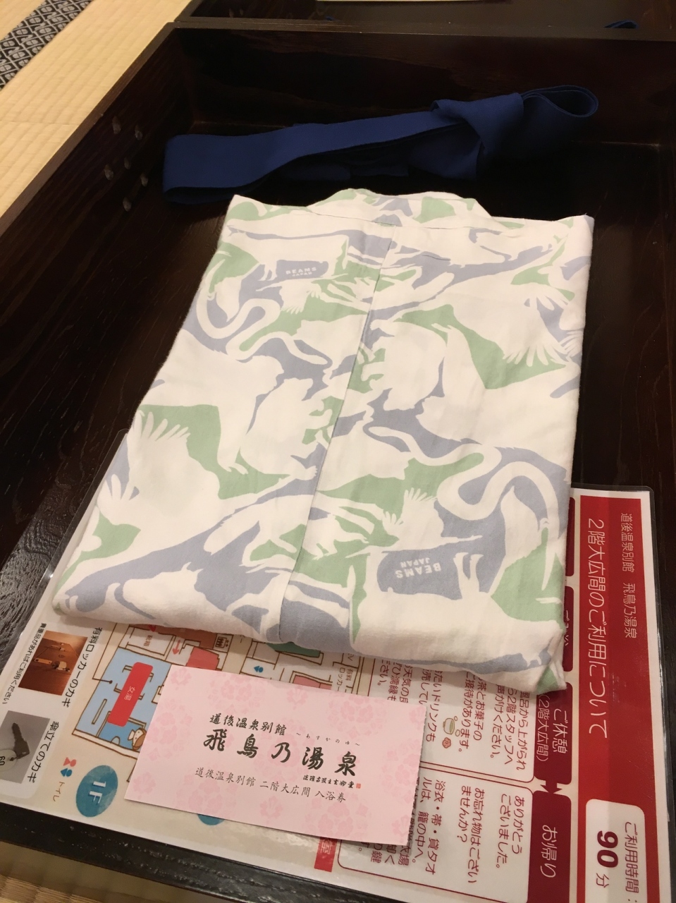 玉の湯 休憩室、貸浴衣タオル、茶菓子つき