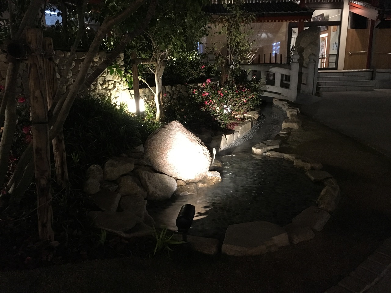 浴室も半屋外の仕掛けがモダンで、30分に1回、プロジェクションマッピングが上映されたりとハイテク仕様なのは若い人向けかな。
