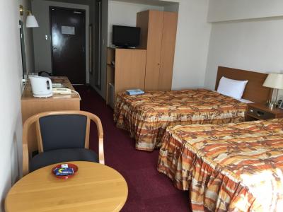 室内はシンプルなツインでユニットバスですが、温泉も本館・別館ともに利用でき、道後温泉からもすぐなので気になりません。