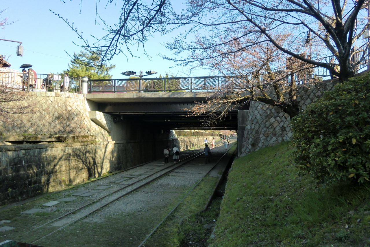 線路の脇には桜のアーチとなり歩くのがとても心地よい。