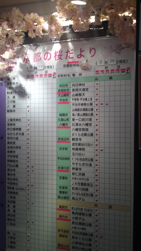 京都中の桜のスポットの開花案内の掲示板があります、
