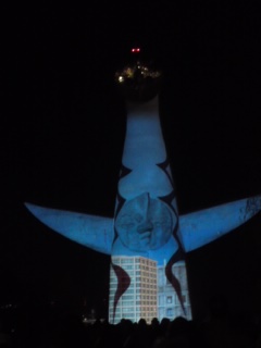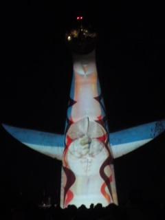 太陽の塔が崩れる、動く ロジェクションマッピンク、イルミナイト万博Xmas