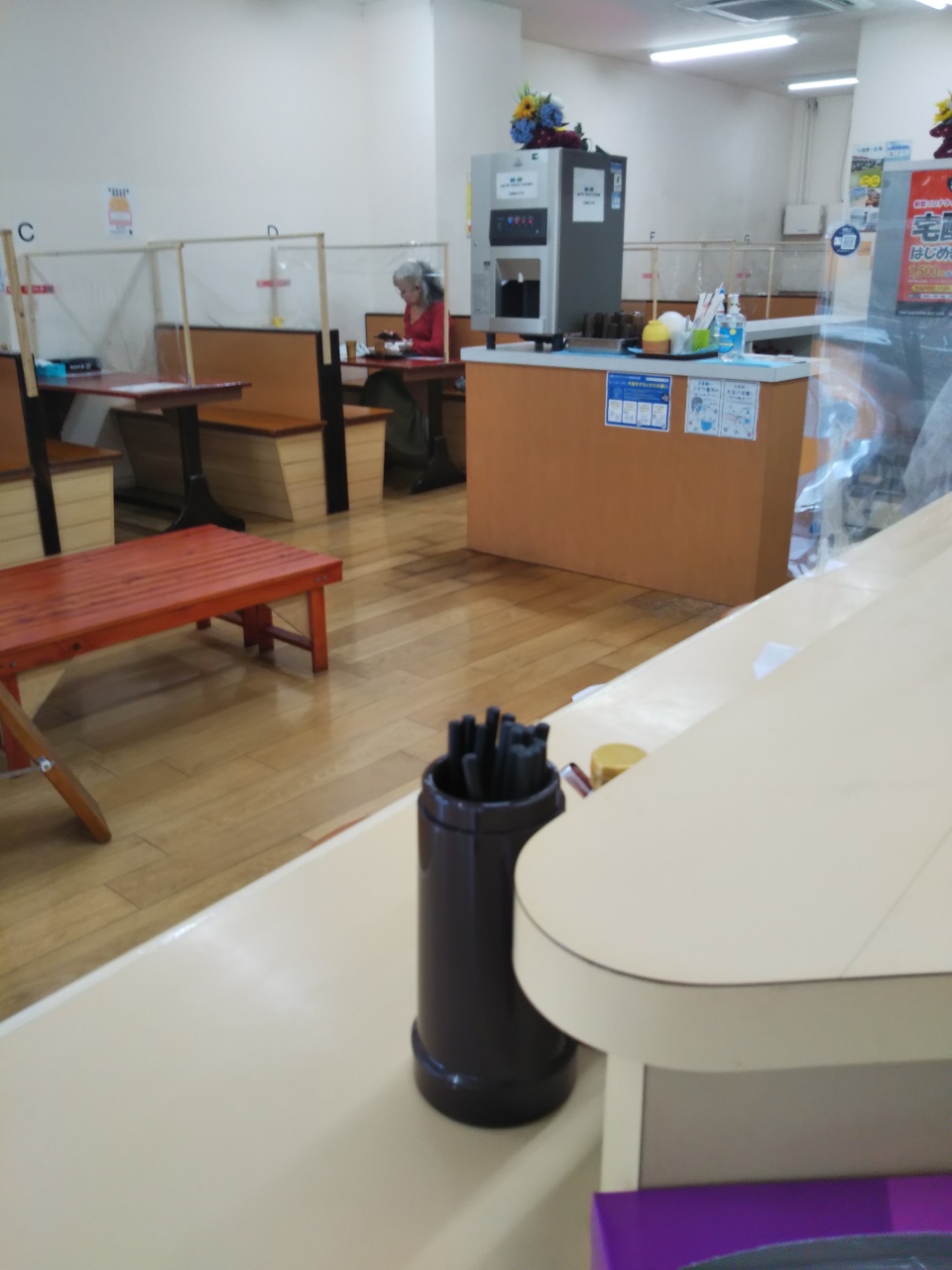 店内は透明のボードがしてあって、券売機で購入出してくれるので、