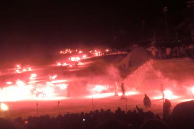 最後はたいまつを持ってスキーヤーがゲレンデを降りてくるフィナーレ