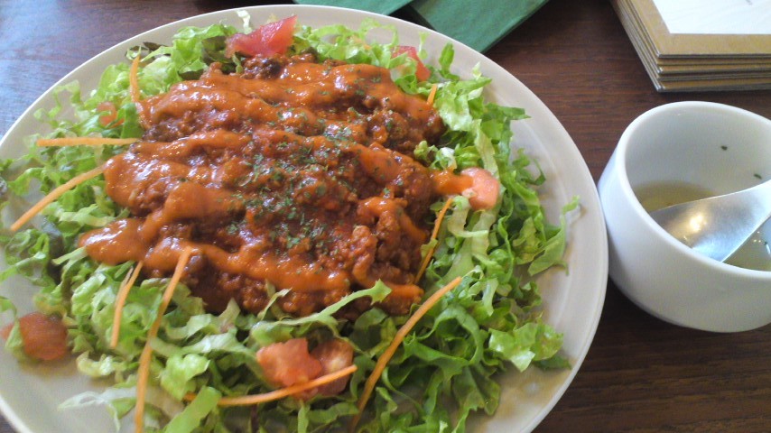 今回はタコライスのランチをいただきました(パスタやオムライスもある)、