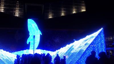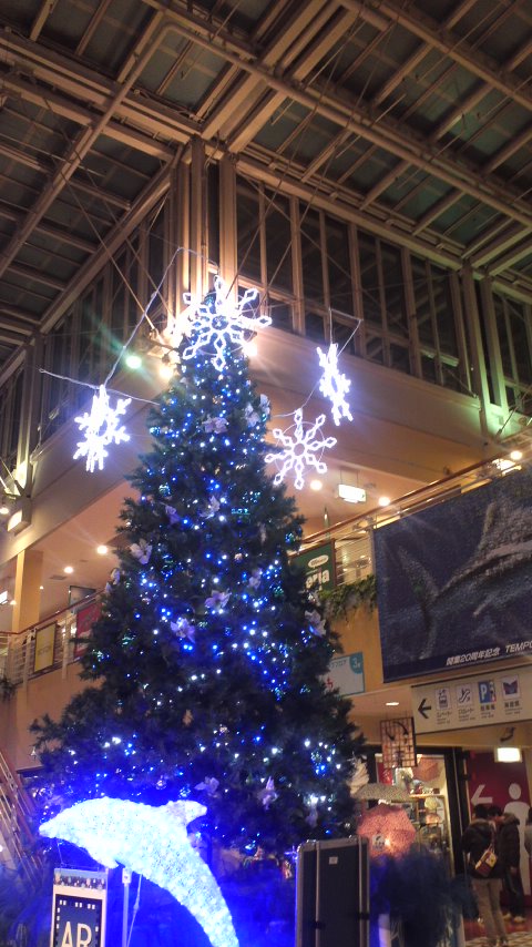 クリスマスの飾りは、中は鯨がいるので控えめですが、