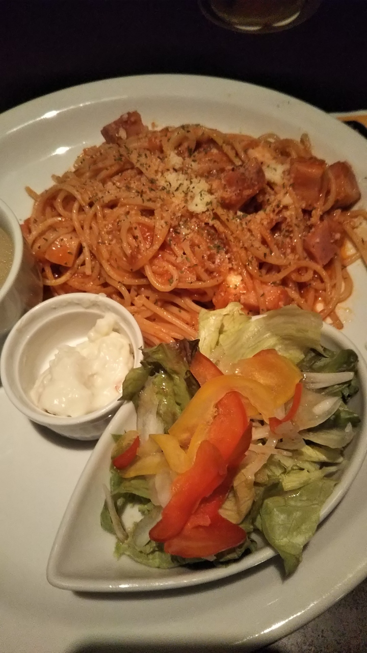 好きなパスタを選べれるのとサラダと、好きなスープとさらに、
