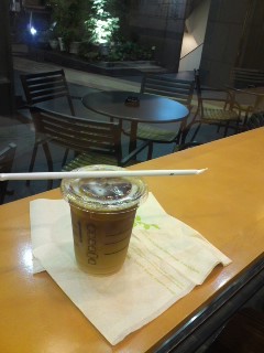 意外と初期に出来たスタバだ、看板も古いママだ。
