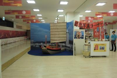 ロビーには月ごとにテーマに会わせた物産展などが行われる、