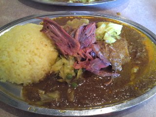 カレーはインド風のさらさらでボリュームたっぷりチキンがごろん、