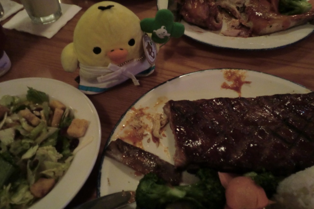 サラダ+ソフトドリンク+リブステーキorチキンです。