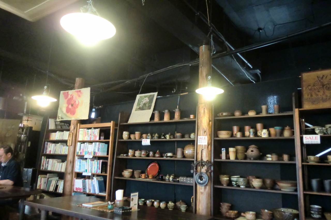 店内は、陶器だらけで靴を脱いであがります、床はフローリングというか板の間ですね