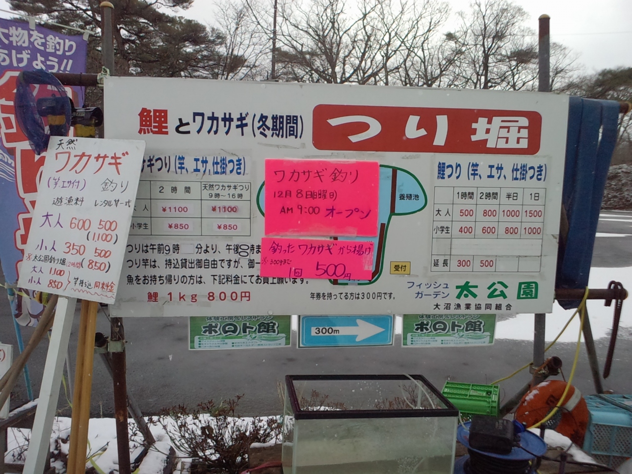 ワカサギ釣りは大人1,100円、子供は850円です。