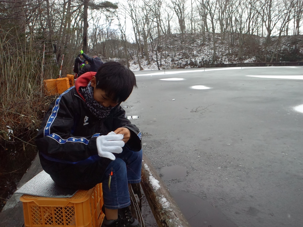 池は凍ってなかったので、桟橋からの釣りでしたが、その日は