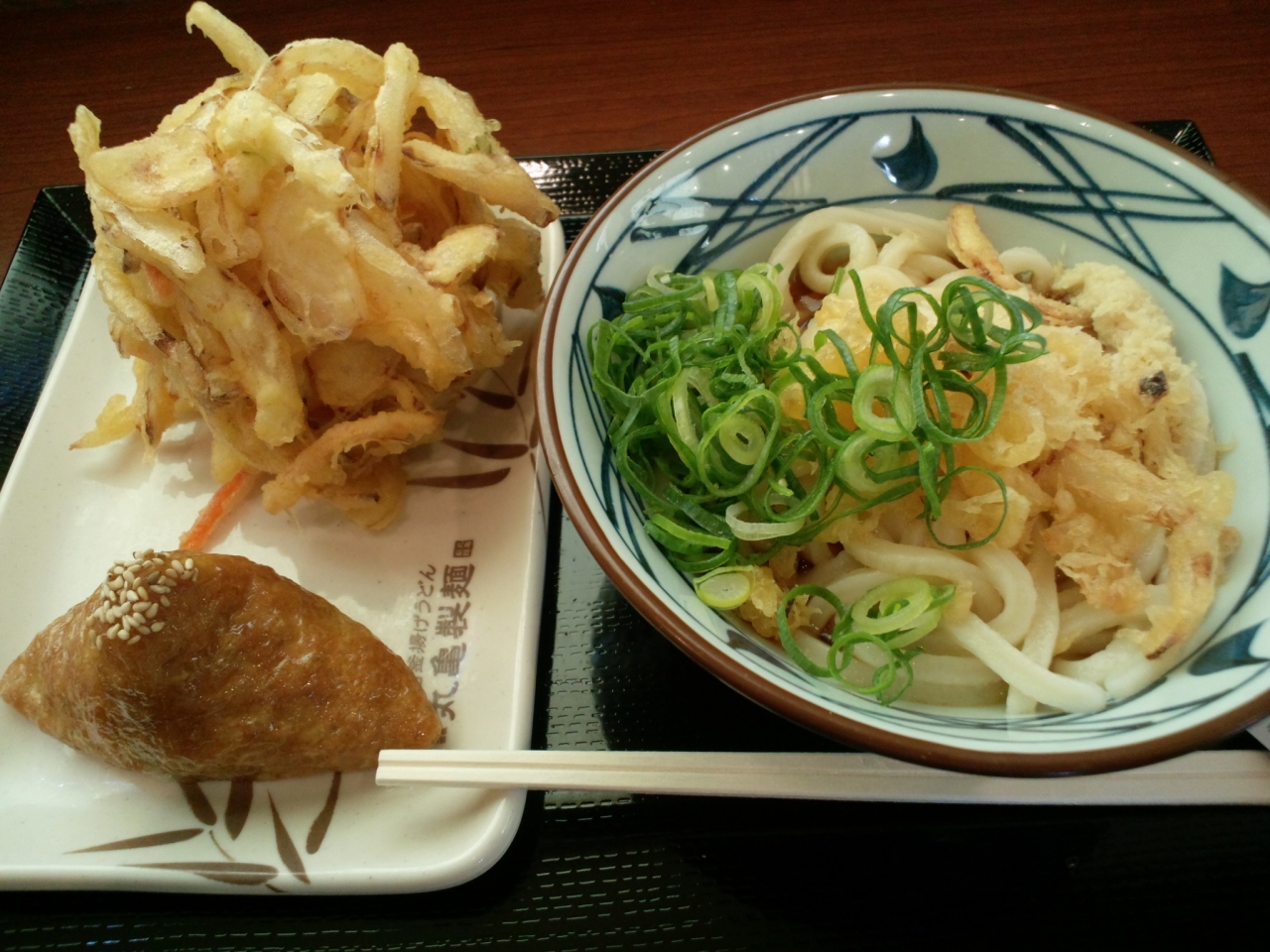 ぶっかけ、かき揚げ、わさび稲荷です。