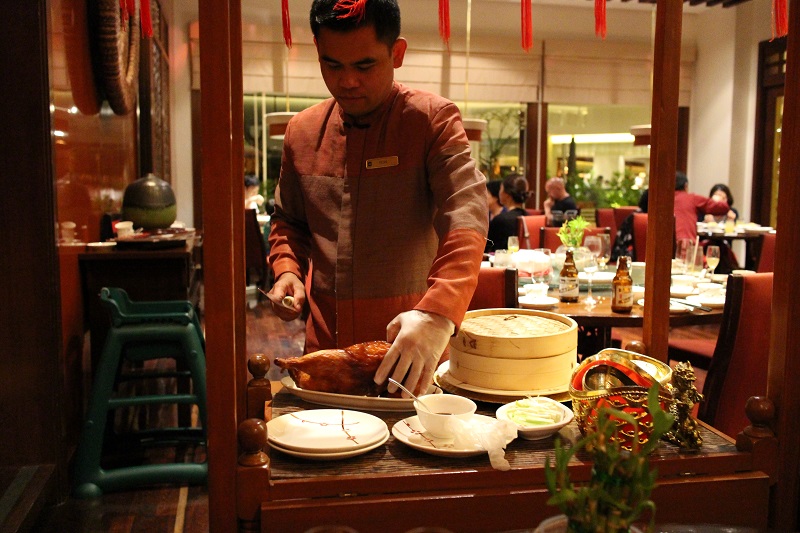 北京ダックを注文しましたが、目の前で皮を削いで食べやすく
