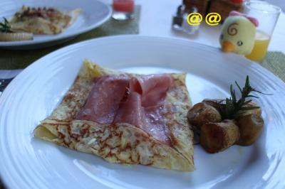 ハム&チーズとパンチェッタハムポテトの二種類のクレープを