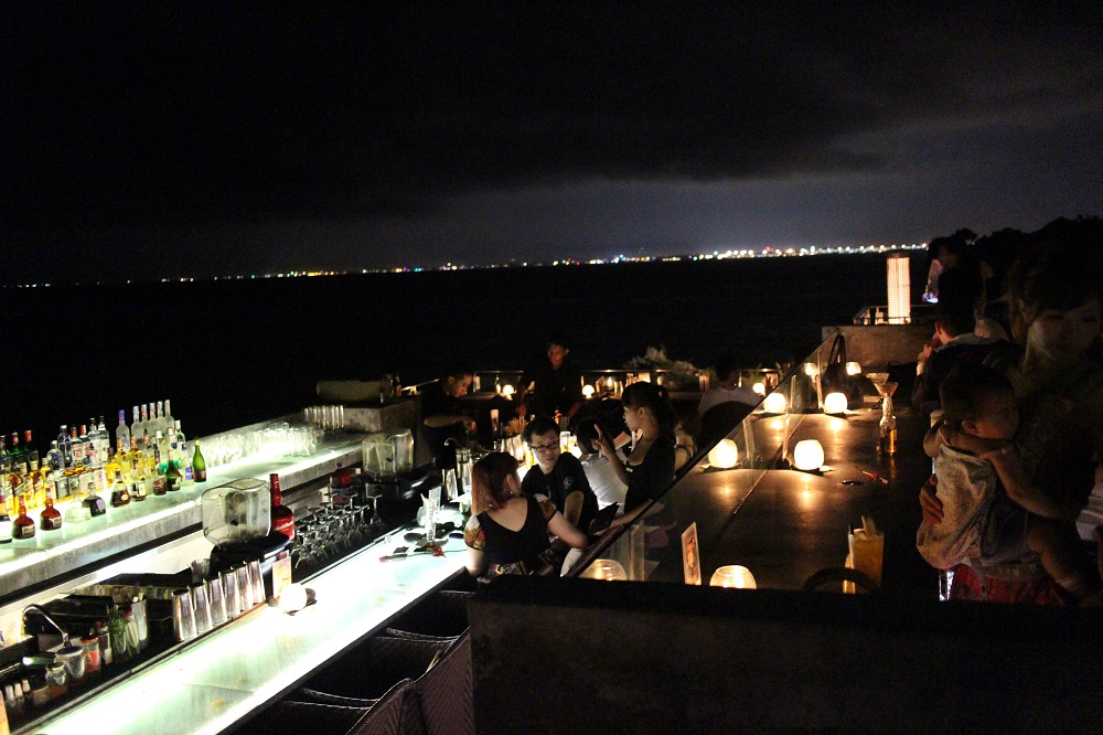 プールサイドの海近くにあるレストランでカウンターバーとテーブル席