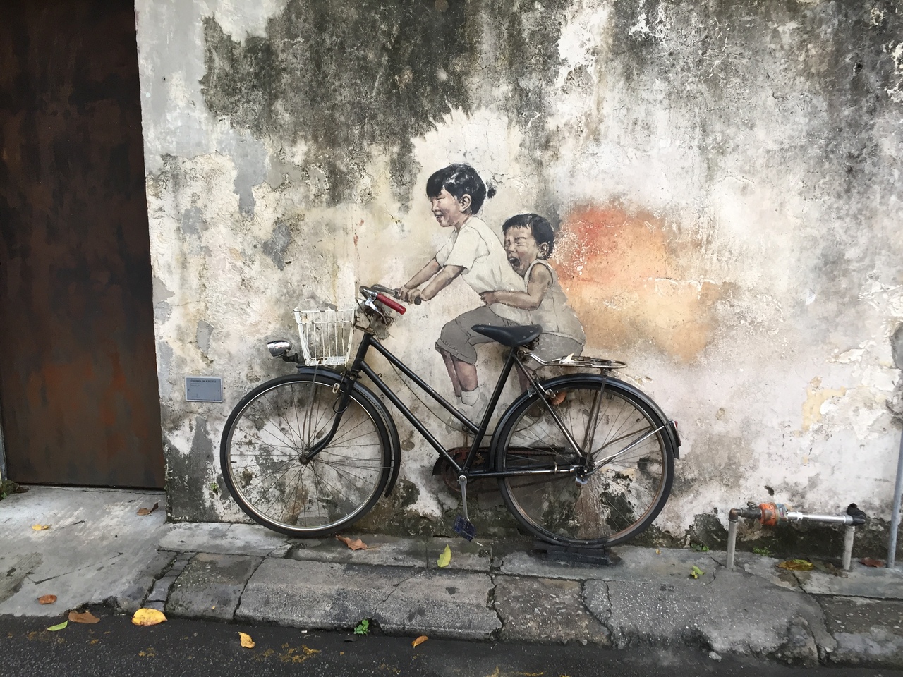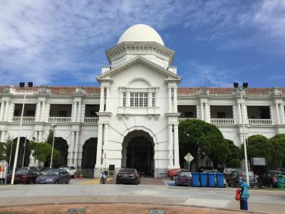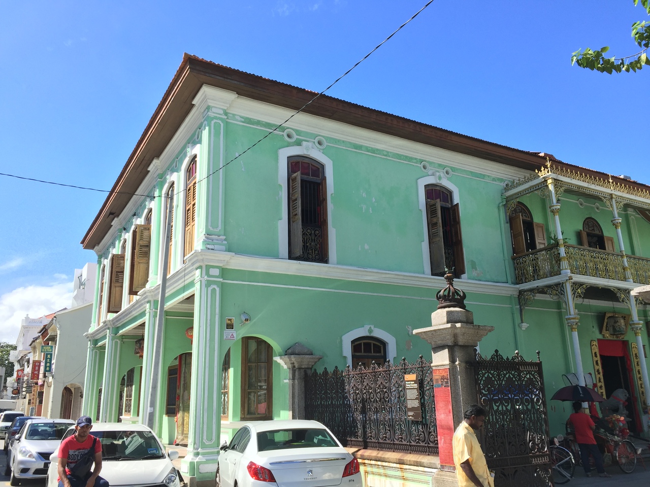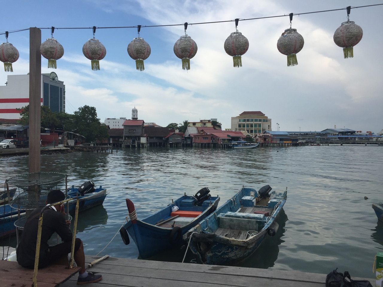 ペナンについてから、毎日雨、くもり、晴れで、一日中繰り返し。3日目の朝は快晴で、時計塔に青空に映って、キレイです。プラナカン マンション僑生博物館を見学のあと、ビーチストリートにそって、道一本で、わかりやすい。となりすぐラカウィンへのフェリー埠頭。