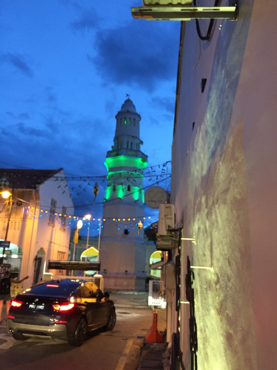 スケールは小さいだけど、朝の祈り時間、鐘がなって、結構雰囲気よかった。夜になると、ライトアップして、さらにきれいになる。よくみかけた吊り飾りだけど、チャイナダウンエリアは提灯で、イスラムお寺のエリアは菱形の吊り飾りたくさんみかけた。