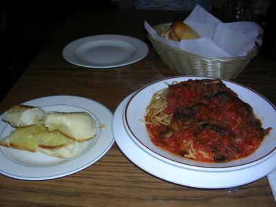 写真はマッシュルーム入りトマトパスタ。12ドルぐらいです。